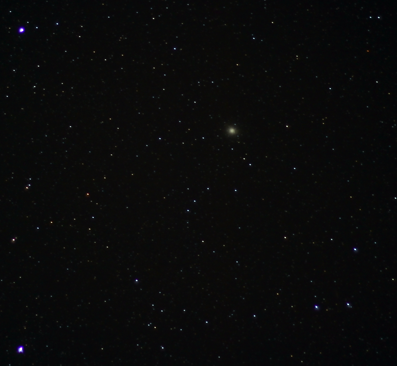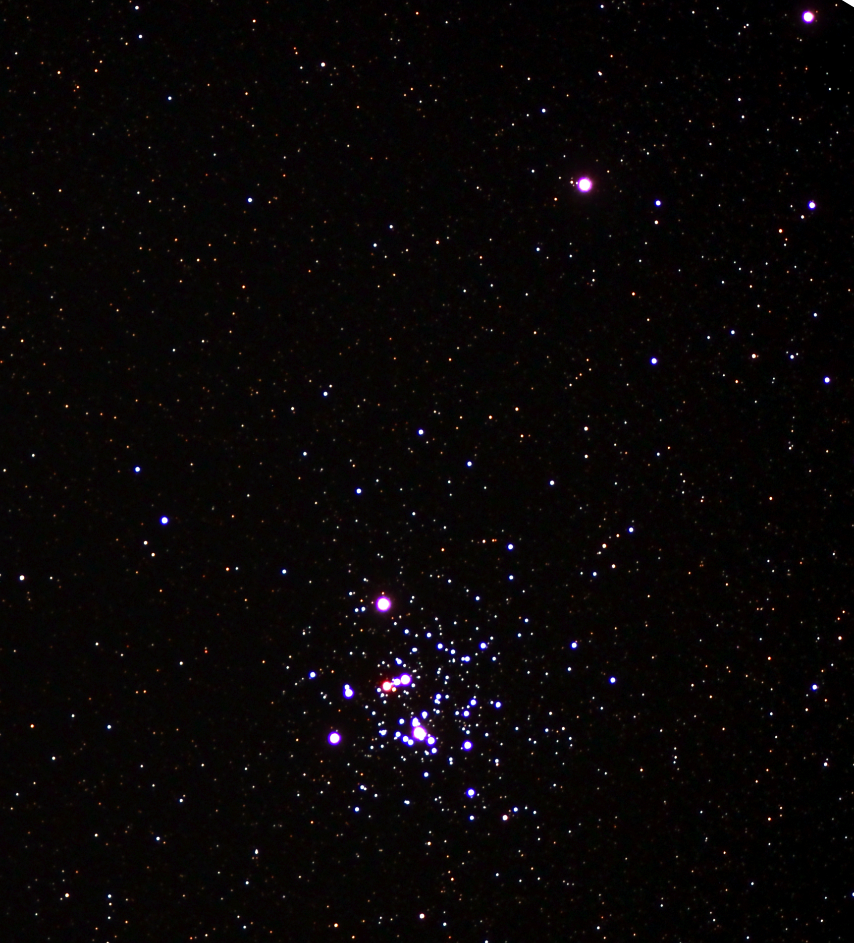 I had taken an image of Omega Centauri with a 50 mm lens on the Canon 550D, on March 1st, just after the above image of the Jewel Box Cluster. It highlights the effect of using the refractor.
