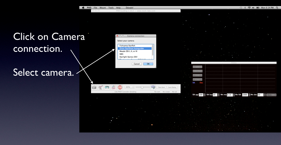 Note that the Mac version of PHD Guiding for the Orion StarShoot Autoguider  camera was NOT at the Stack Labs web site. It was at a link stated to be Mac drivers but was actually a whole different version of the software with this camera now included.